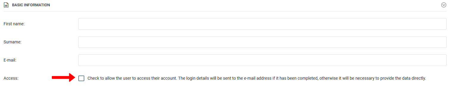 Če starš še ni v sistemu, morajo polja pod brskalnikom biti ročno izpolnjena. Tukaj se boste odločili ali želite staršu dati prijavo in geslo. Da to storite, označite sivo polje. Če vnesete staršev e-poštni naslov in preverite dostop, bo e-poštno sporočilo poslano na e-poštni naslov s podatki o prijavi.